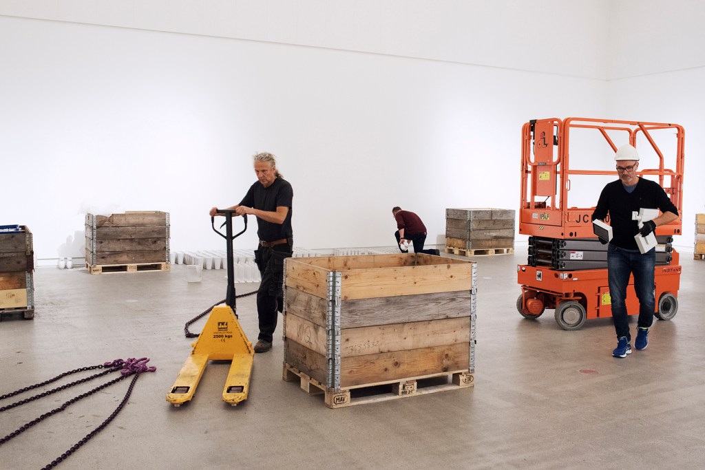 Verket er nå under montering, og publikum inviteres til å følge prosessen frem mot et ferdig verk. Kunsthallen har åpent hver dag under denne prosessen.