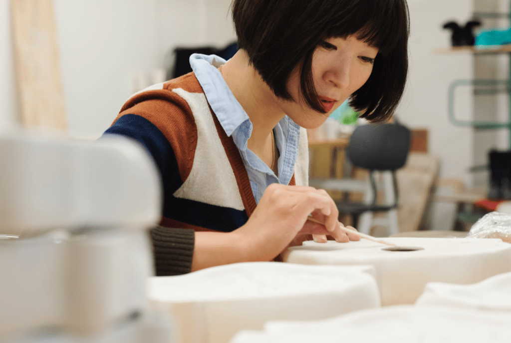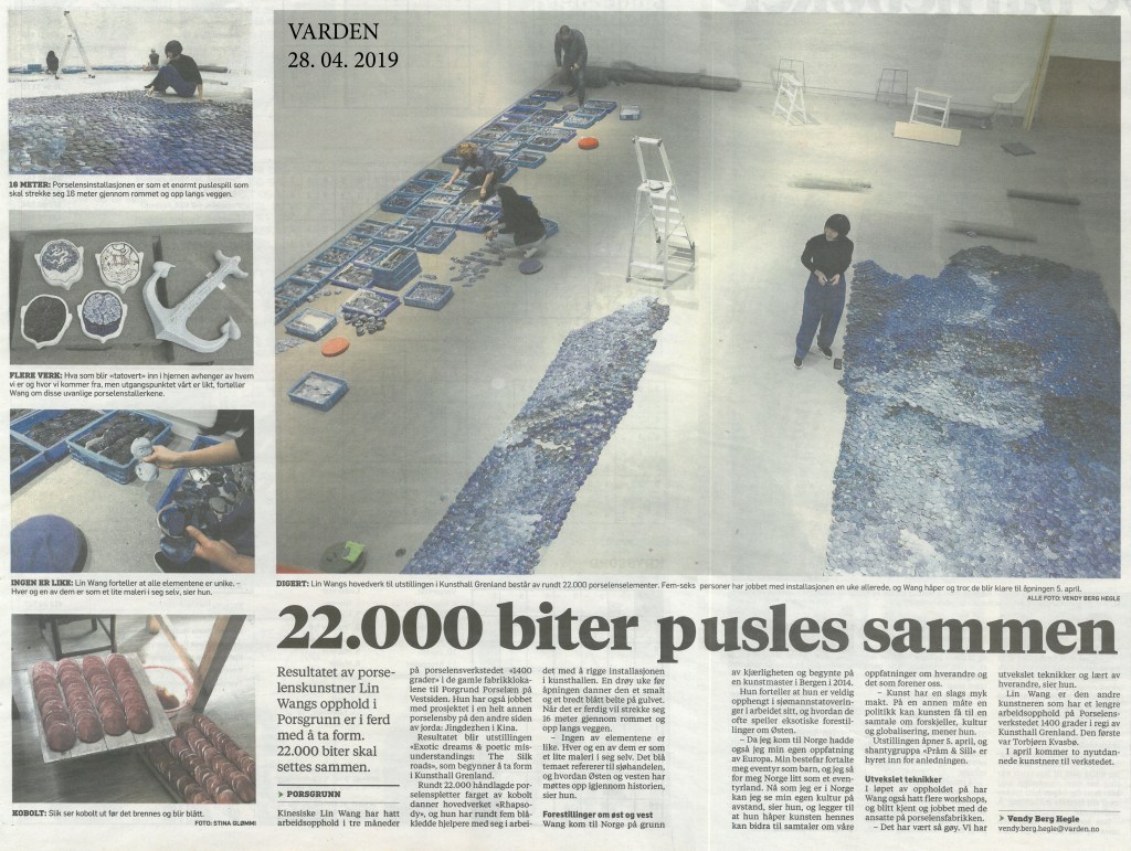 Den kinesisk-fødte kunstneren Lin Wang er nå i godt driv med monteringen av sin monumentale porselens-installasjon.