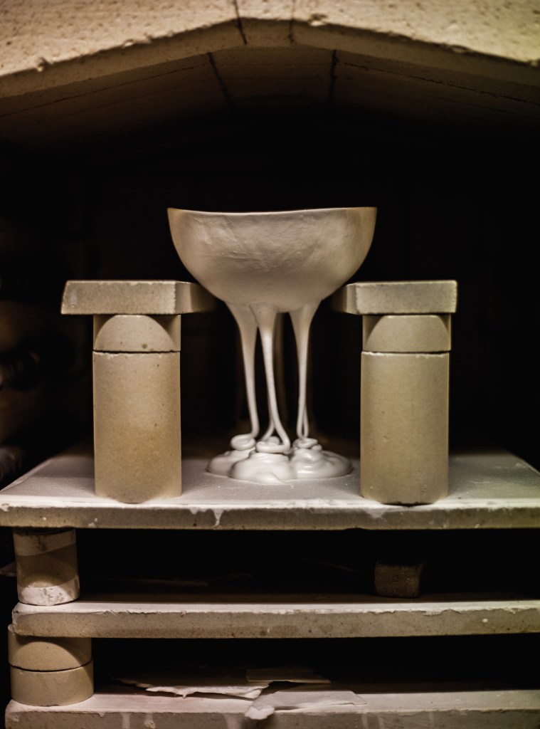 Glasur er normalt noget man putter uden på sine kopper og tallerkener, dels for at gøre dem fine, men også af hygiejniske og funktionsmæssige årsager. Men glasur er jo egentlig en flydende masse – en glasmasse, i hvert fald når keramikovnen er på sine højeste temperaturer. Denne flydende glasurmasse kan bruges til at give et objekt sin endelige form. Det er denne mulighed der ligger i glasuren, som jeg undersøger og eksperimenterer med.
