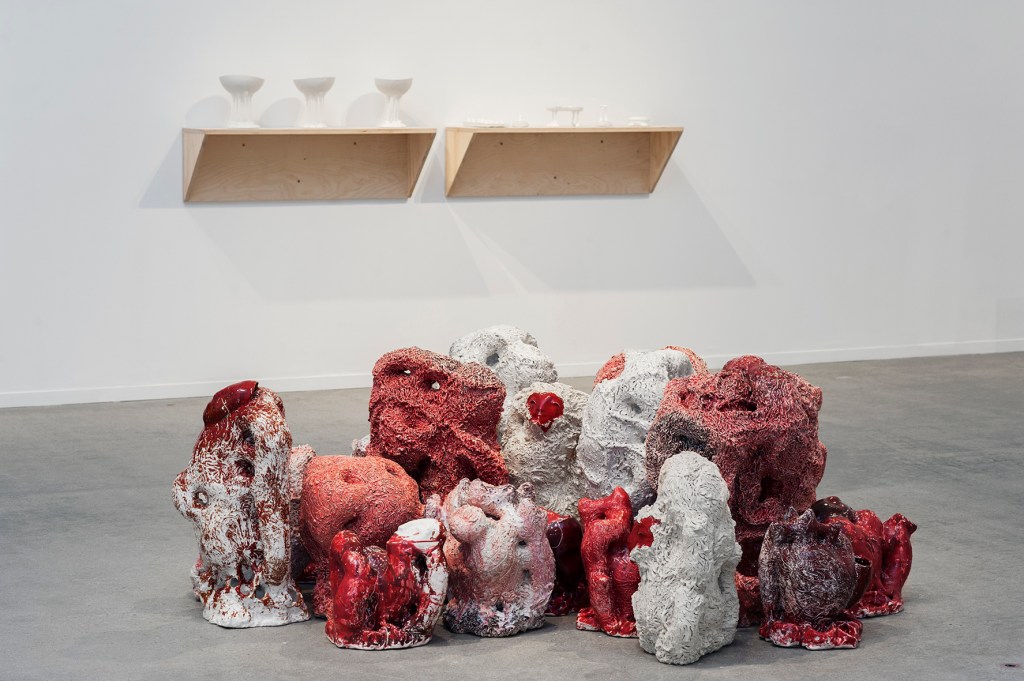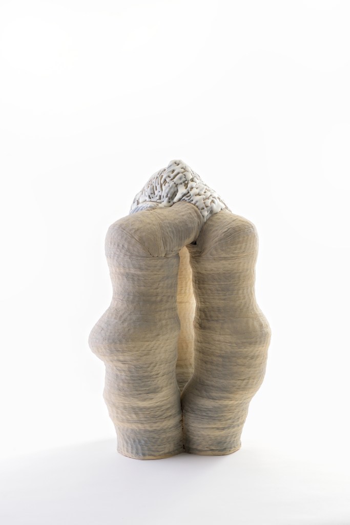 Jeg bruker ofte porselen i mine arbeider, og gjerne i kombinasjon med andre leirtyper. Materialet som er gravet opp fra jordens indre og tatt bort fra sin opprinnelighet, bærer på en kunnskap og en hukommelse. Den har sin historie. Når de forskjellige egenskapene møtes på forskjellige stadier, oppstår det en kompleksitet jeg finner interessant. Det sarte og skjøre porselenet sammen med den rå og våte leira.