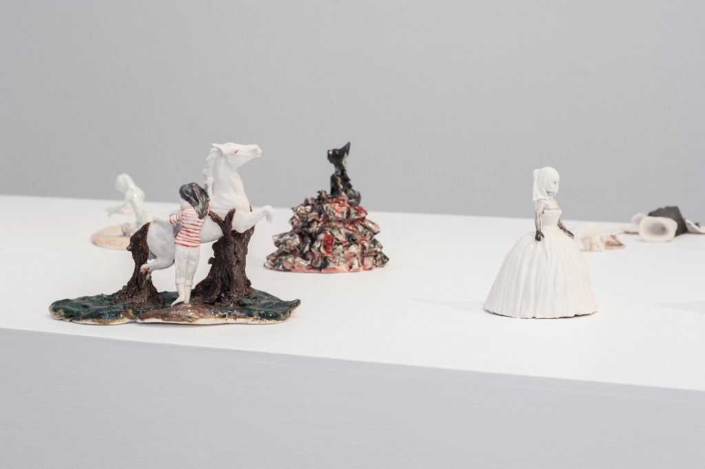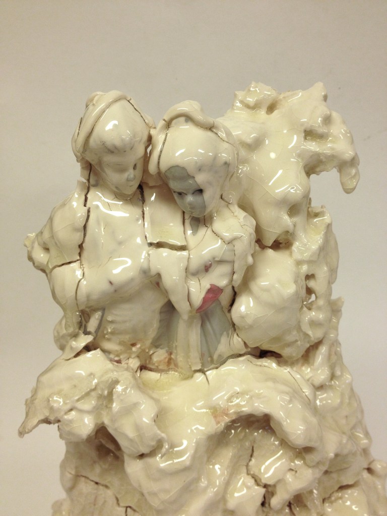 I den senere tid har jeg benyttet porselensfigurer som jeg har arvet etter min mormor. De har stått i hennes hyller, i hennes hjem i alle år. De har gjennomgått en prosess fra flytende og plastisk materiale, til et ferdig og evig produkt. Disse figurene har sin egen verdi. Med mine arbeider ønsker jeg å gi dem en ny verdi, og fortelle en annen historie. Arbeidsmetoden er fri, lekende og uten grenser. Akkurat slik jeg hadde det i min oppvekst, i hennes hjem.