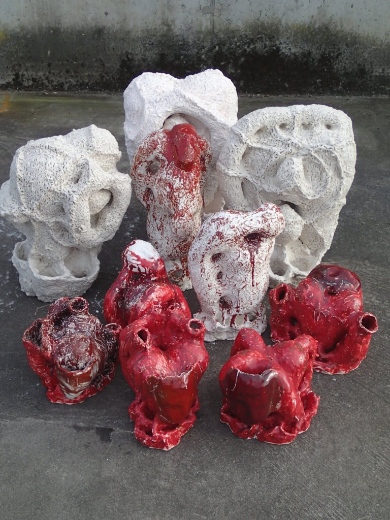 Tittelen på utstillingen “In Spe” eller “i en embryonisk form”, passer perfekt til mine arbeider. I mer enn 30 år har mine arbeider tatt for seg embryonets utvikling og livets opprinnelse. Like lenge har jeg arbeidet med porselen, fordi jeg føler det er det perfekte materialet til å uttrykke organiske, sensuelle former. Porselenets hvithet er viktig for verkets luminositet og glød, etter at det er airbrushet, glasert og sandblåst. Nivåene av gradering i fargene, samt tykkelsen på den krakelerte glasuren og den sandblåste, ødelagte overflaten, gir verket en illusjon av dybde.
