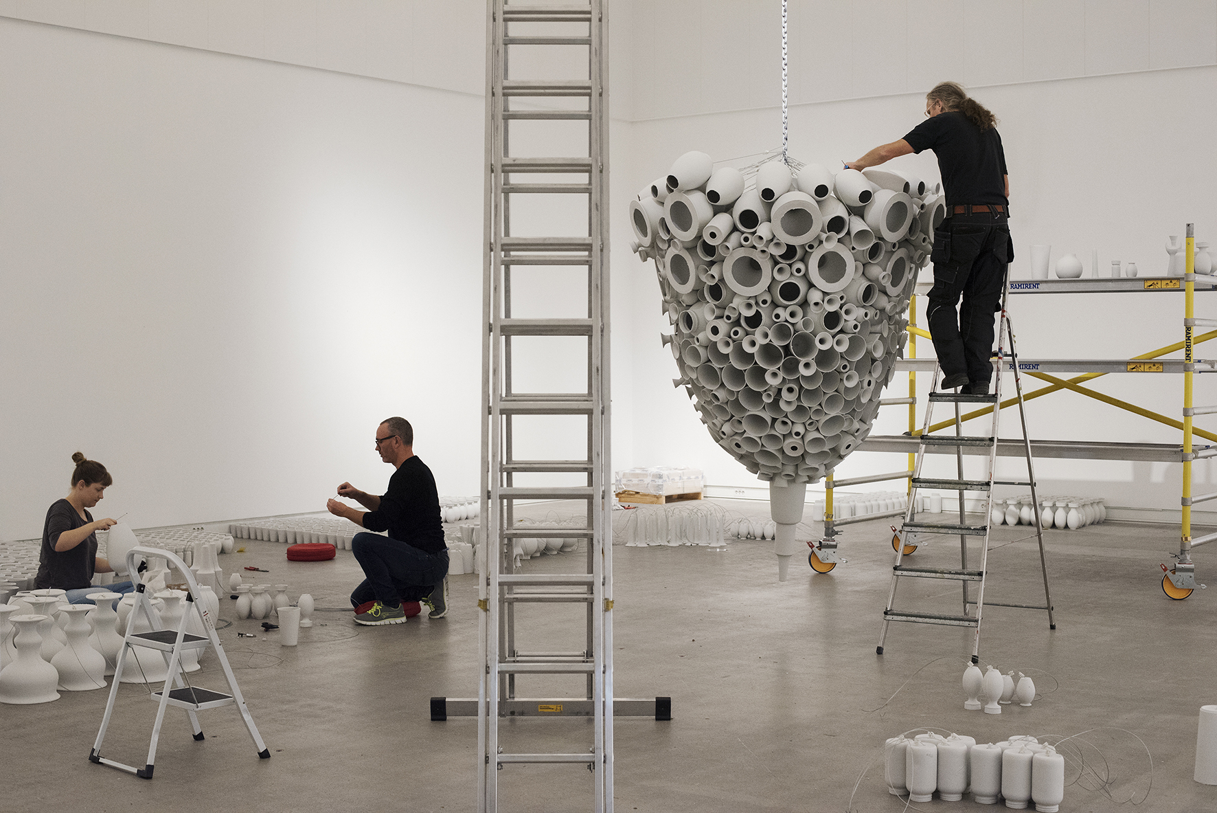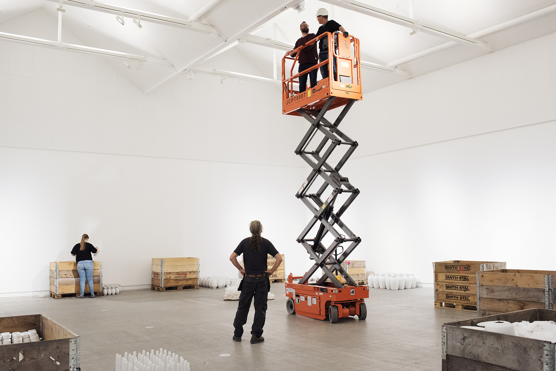 FRA MONTERINGEN AV VASEKLASE I KUNSTHALL GRENLAND